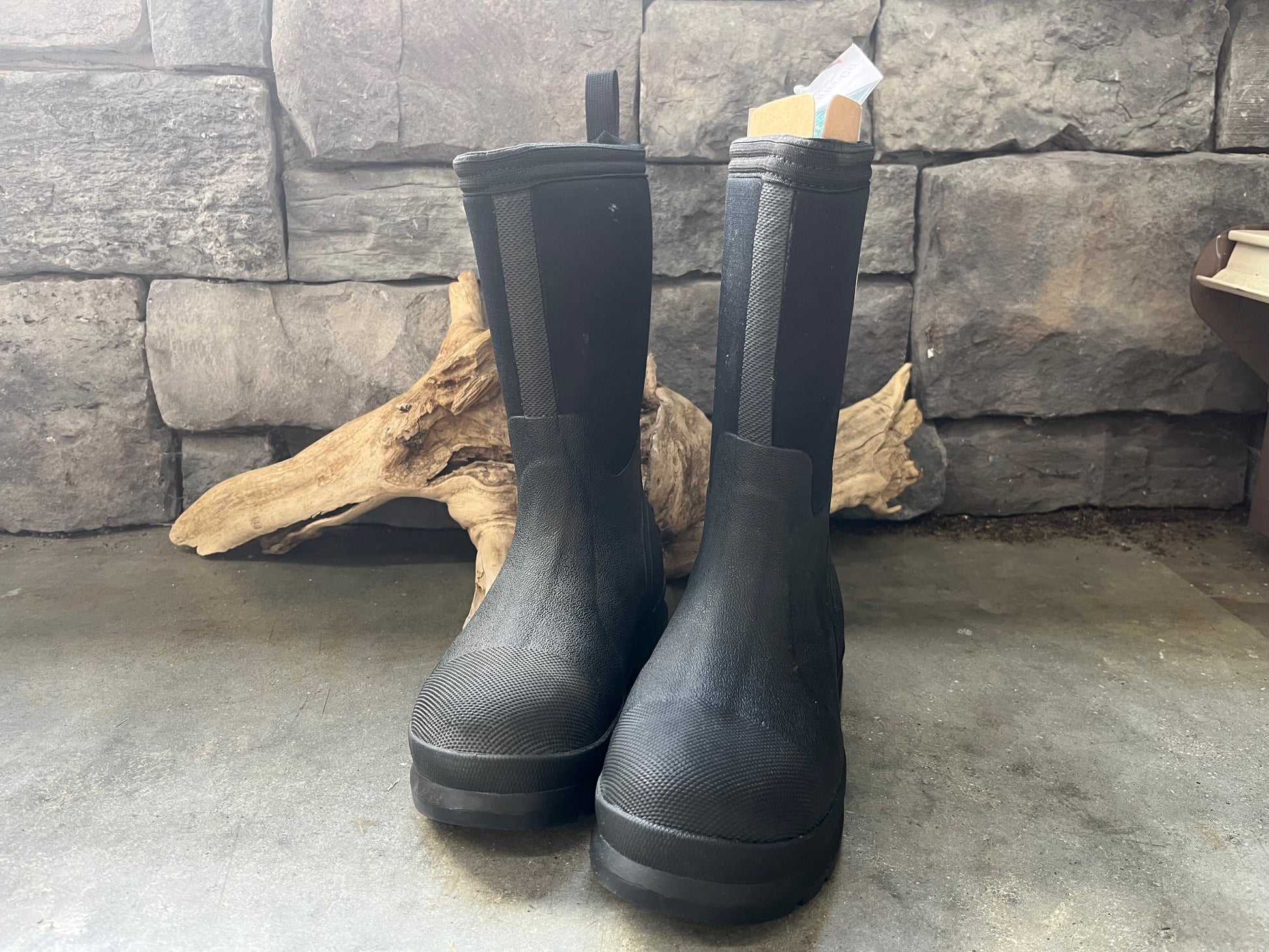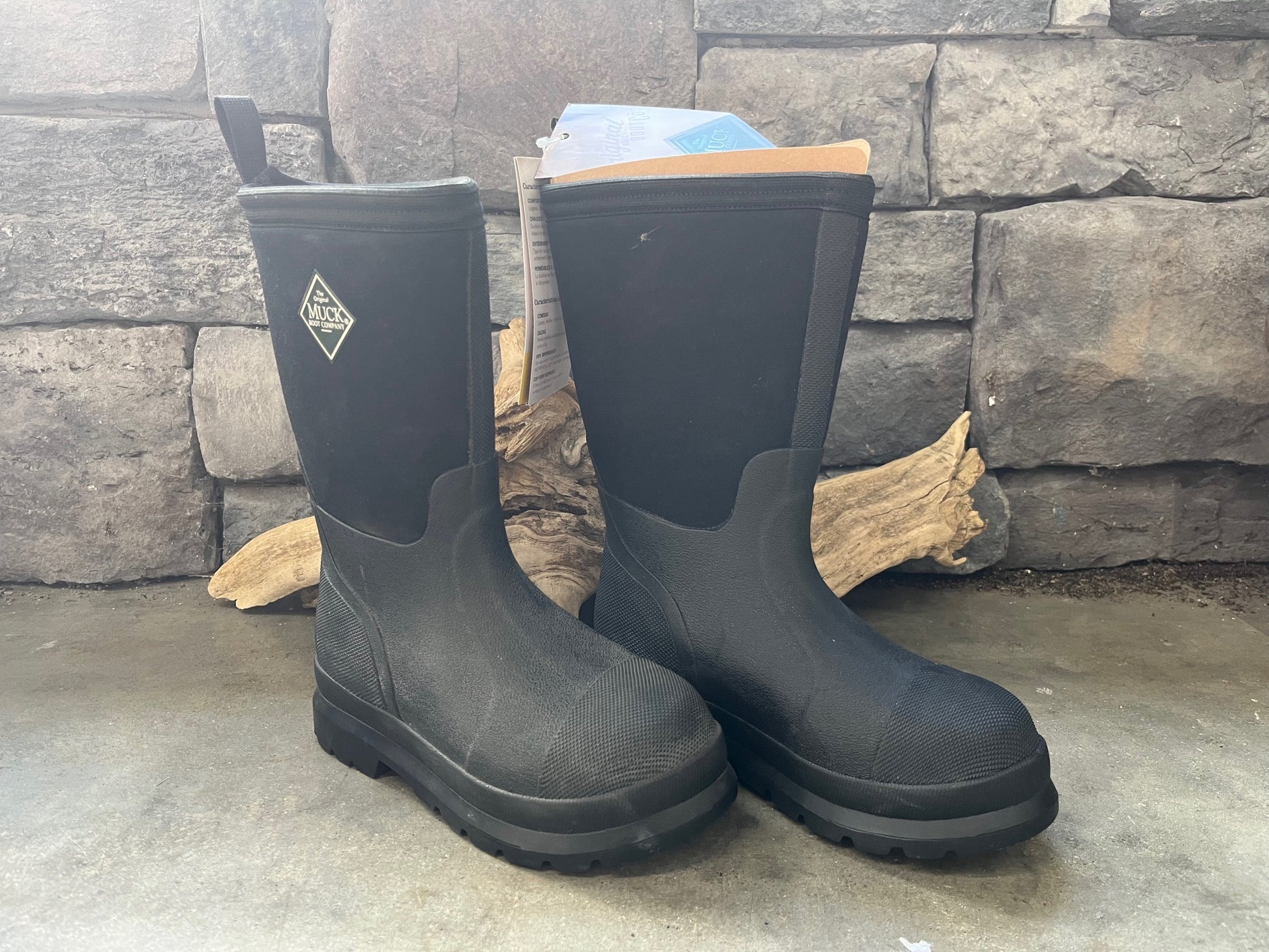 You're never too young to get mud on your boots! That's why Muck Boots popular original Chore Boot is sized for boys and girls with the classic quick clean toughness that's comfortable, lightweight, and totally waterproof. The Kids' Chore Classic Boot in black are the ultimate in durability and useful in any condition. Reaching 11 inches in height, these pull-on boots feature a quick clean rubber overlay, are triple reinforced in the toe area, quadruple reinforced in the heel area, and is wide cut for added stability. A durable, lightweight rubber outsole with diamond-textured toes and heel reinforcements resist scuffs and scratches. Their 5mm CR flex-foam booties feature four-way stretch nylon that is lightweight and flexible. Stretch-fit topline bindings snug the legs securely to keep warmth in and cold out, making these boots useful in any weather.